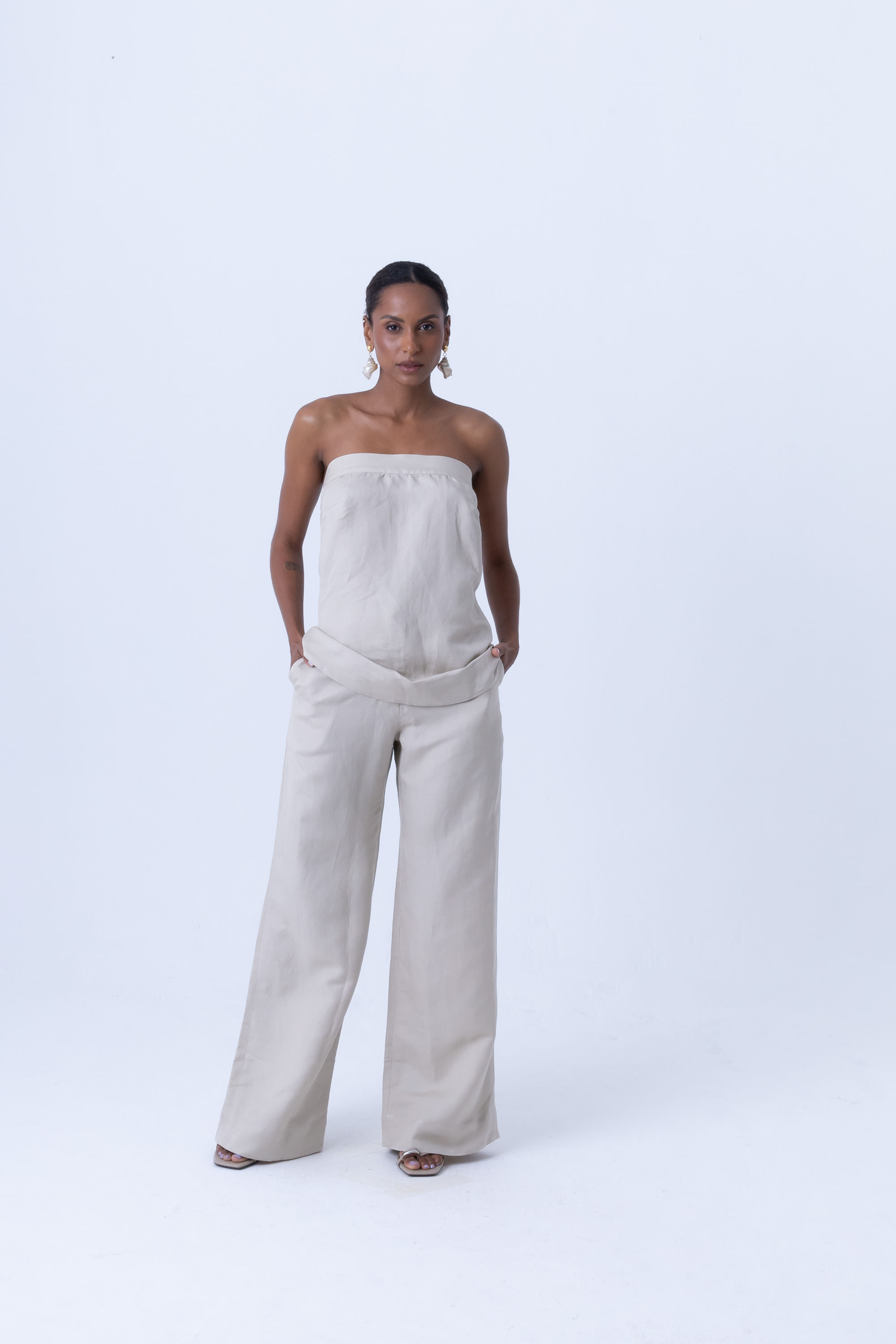 Bege blusa tomara que caia com amarração nas costas P