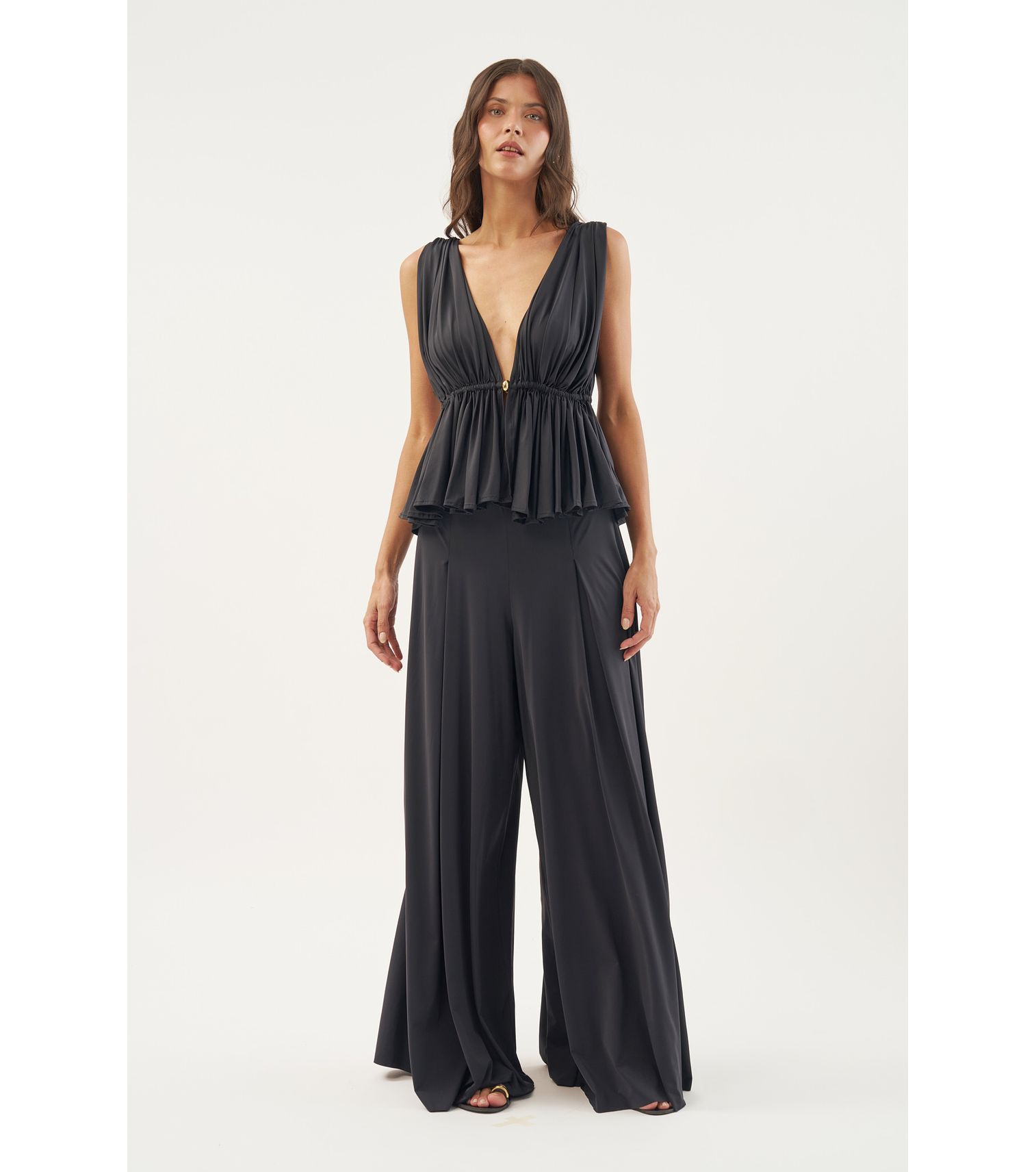 Preto blusa um ombro só e detalhe em metal P