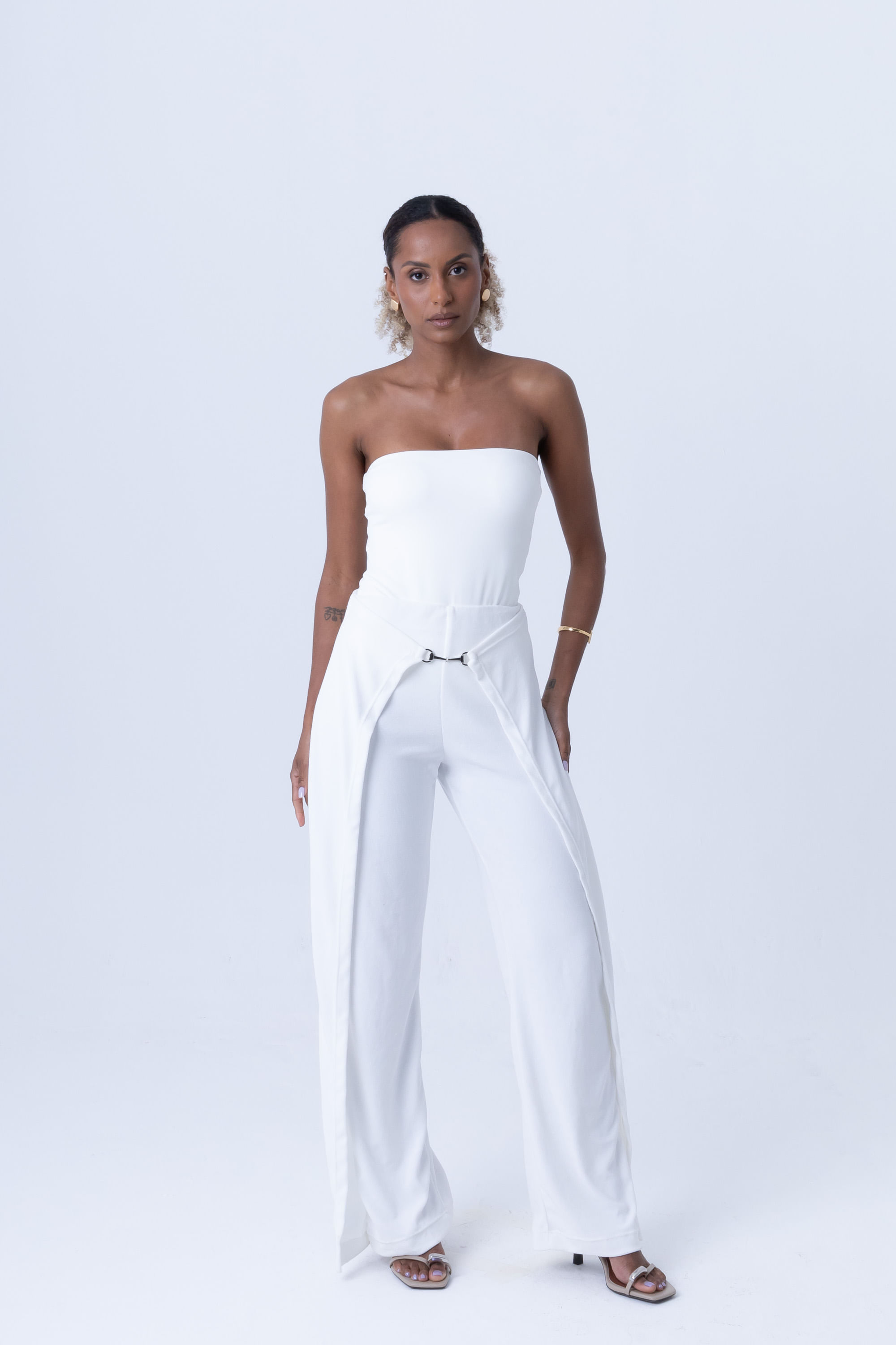 Cobre calça em linho recorte lateral P