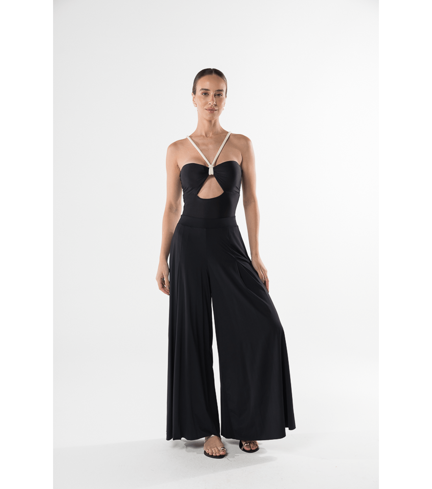 Preto calça pantalona com fendas M