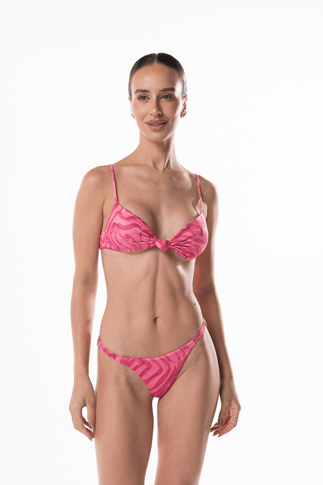 Pink marmorizado calcinha de biquíni com reguladores nas laterais M
