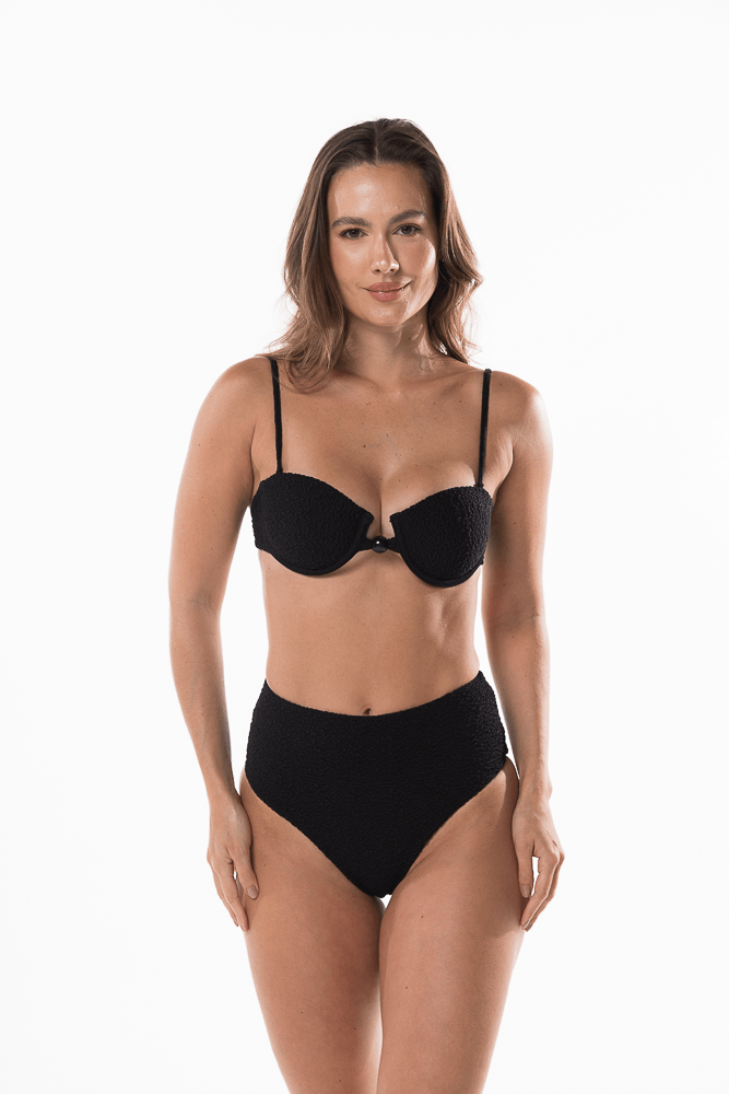 Preto calcinha de biquíni hot pants com cinto e metais M