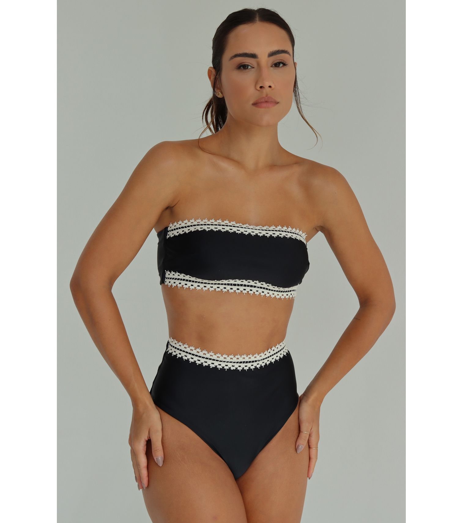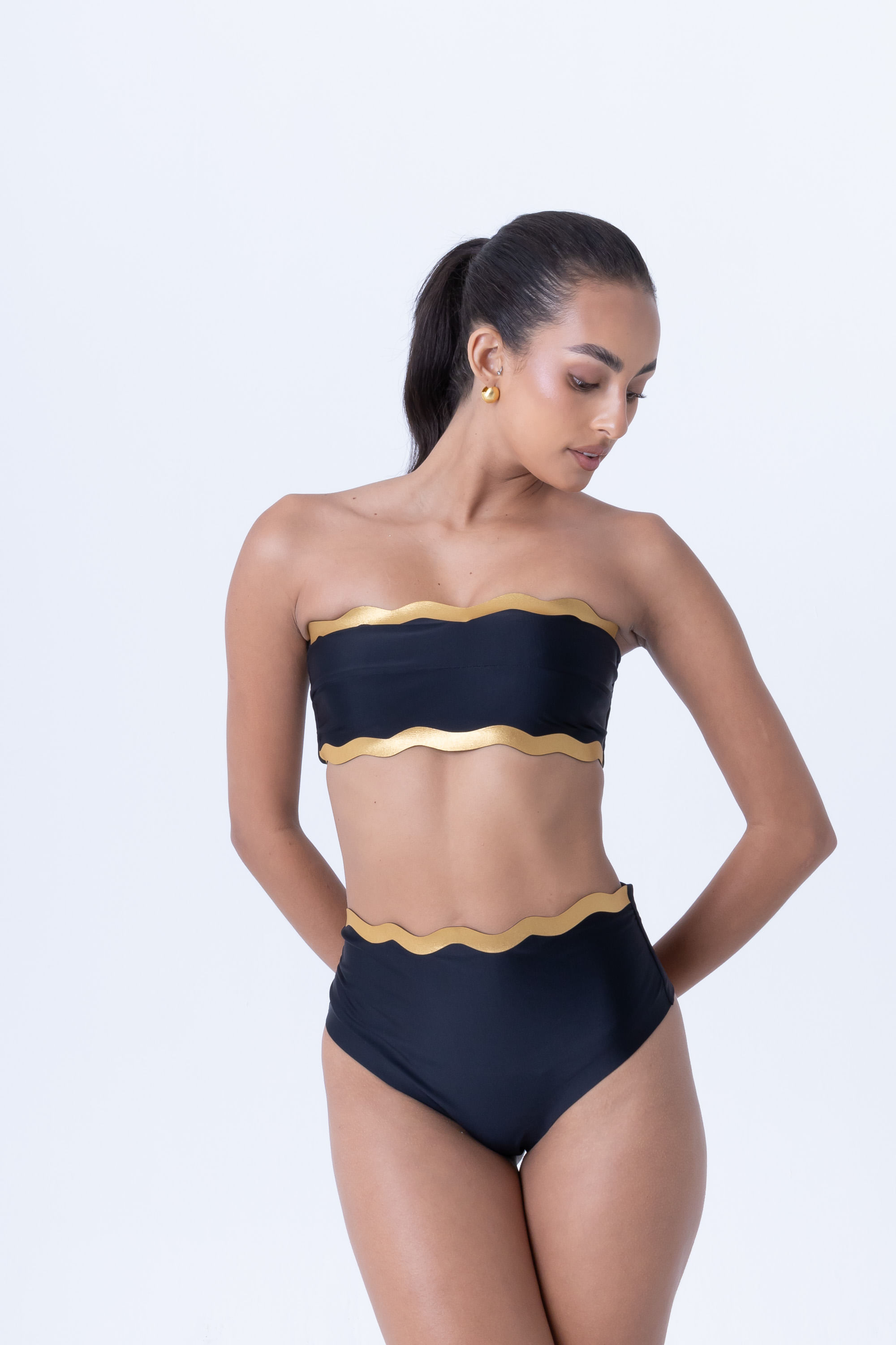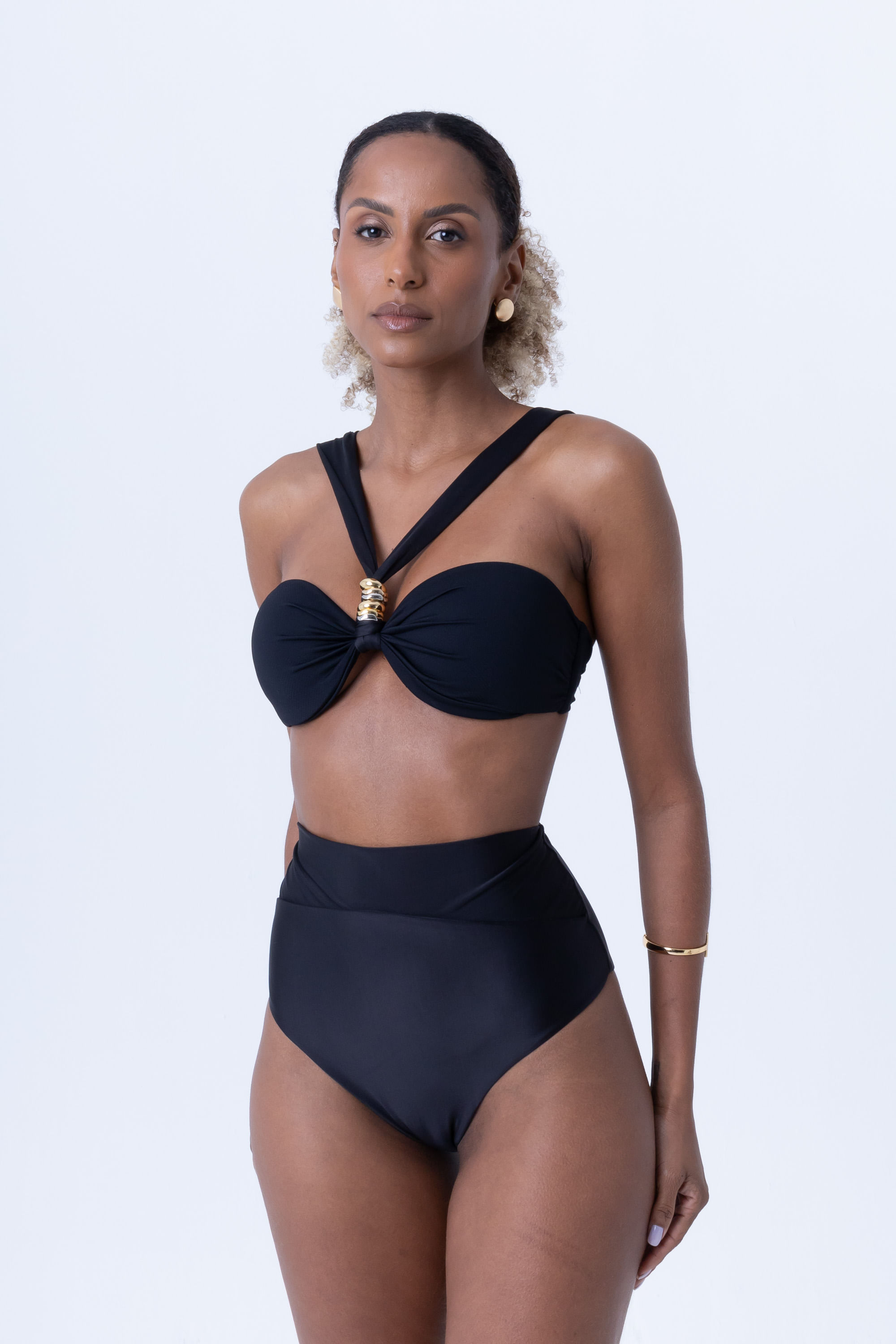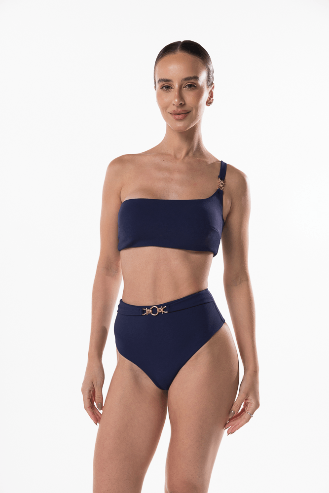 Azul marinho calcinha de biquíni hot pants com faixa e metal P