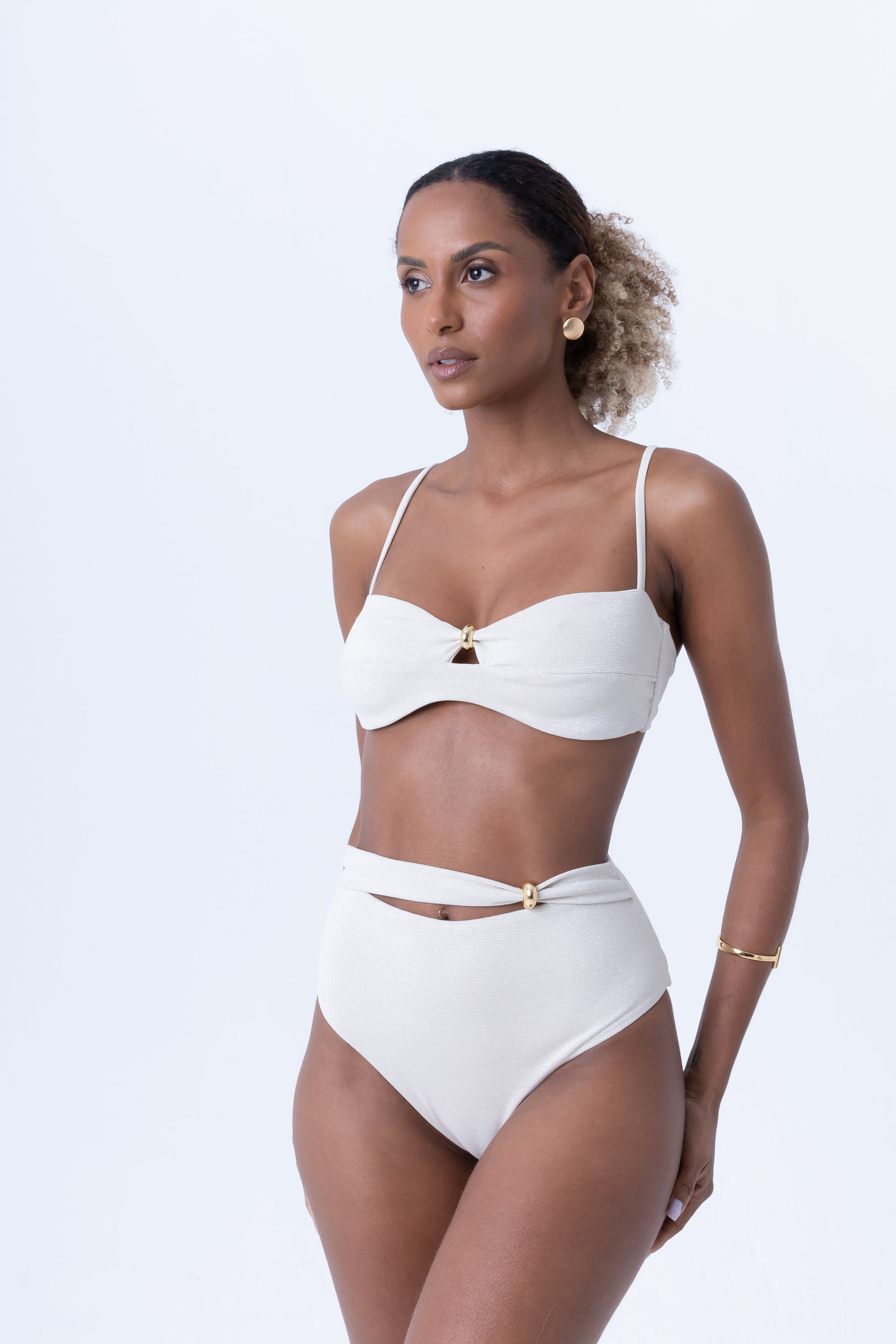 Lurex off calcinha de biquini hot pants com faixa e argola M