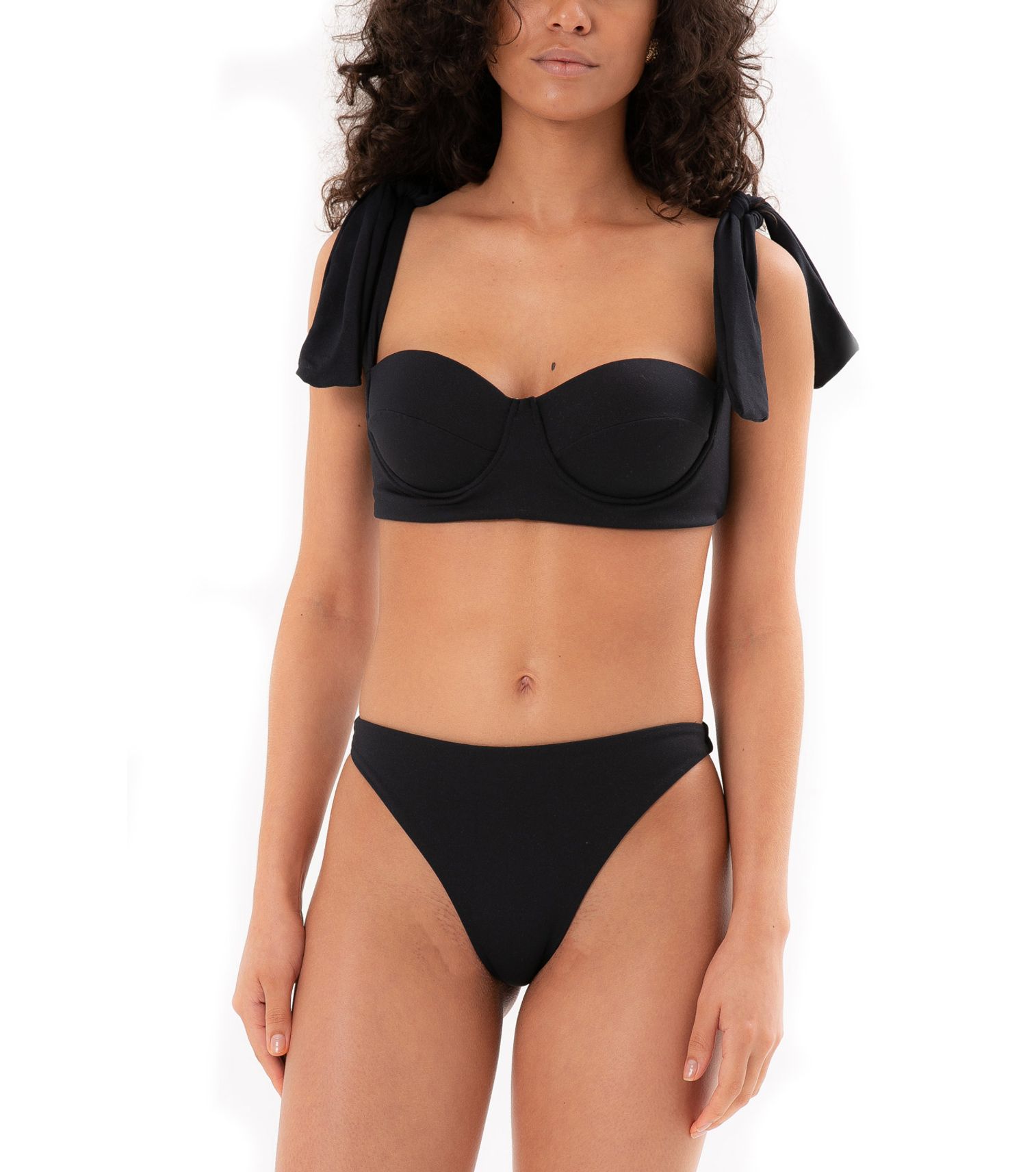 Top meia taça com bojo fixo e amarração no ombro com abotoador nas costas.