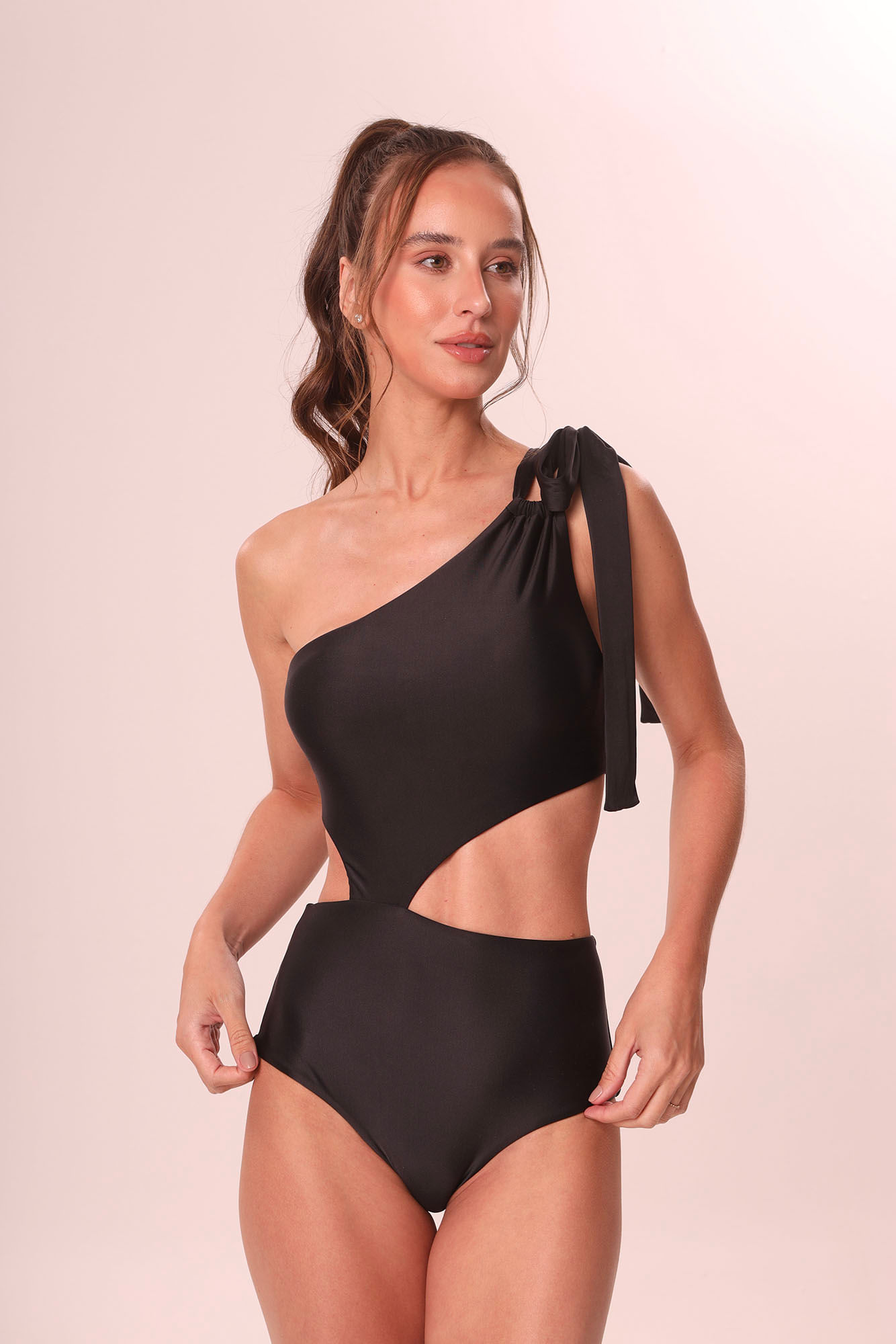 Preto maiô um ombro só com laço no ombro M