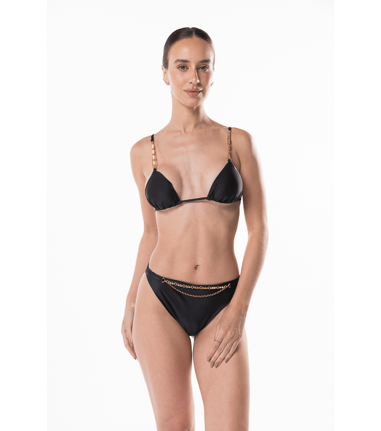 Azul índigo top de biquíni cortininha com elos e reguladores M