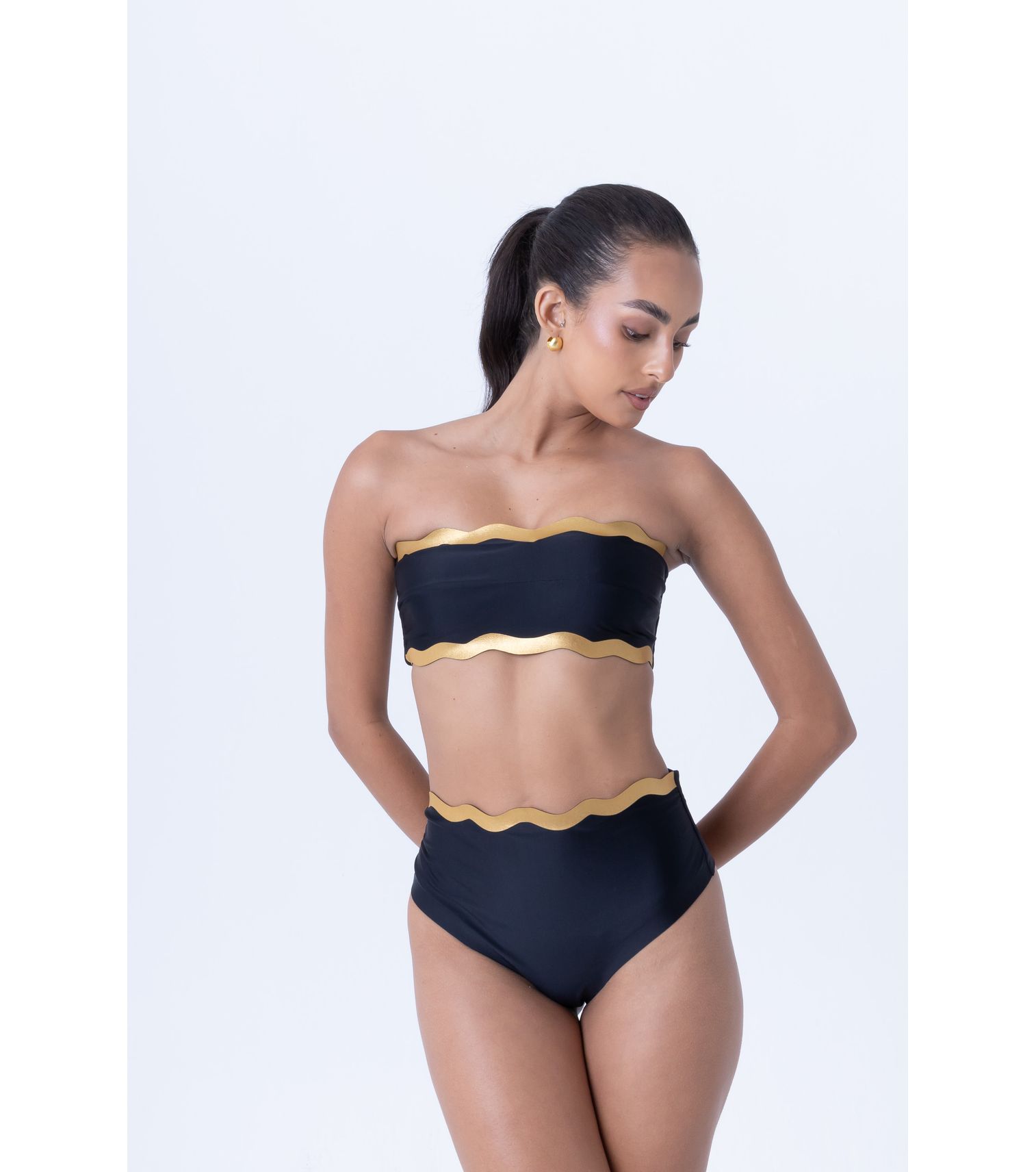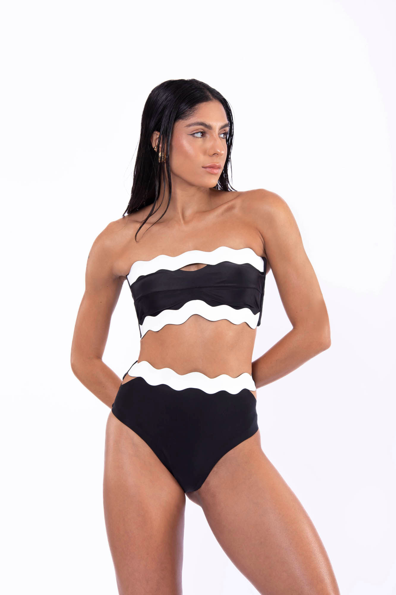 Preto e branco top de biquíni reto com abertura ondas M