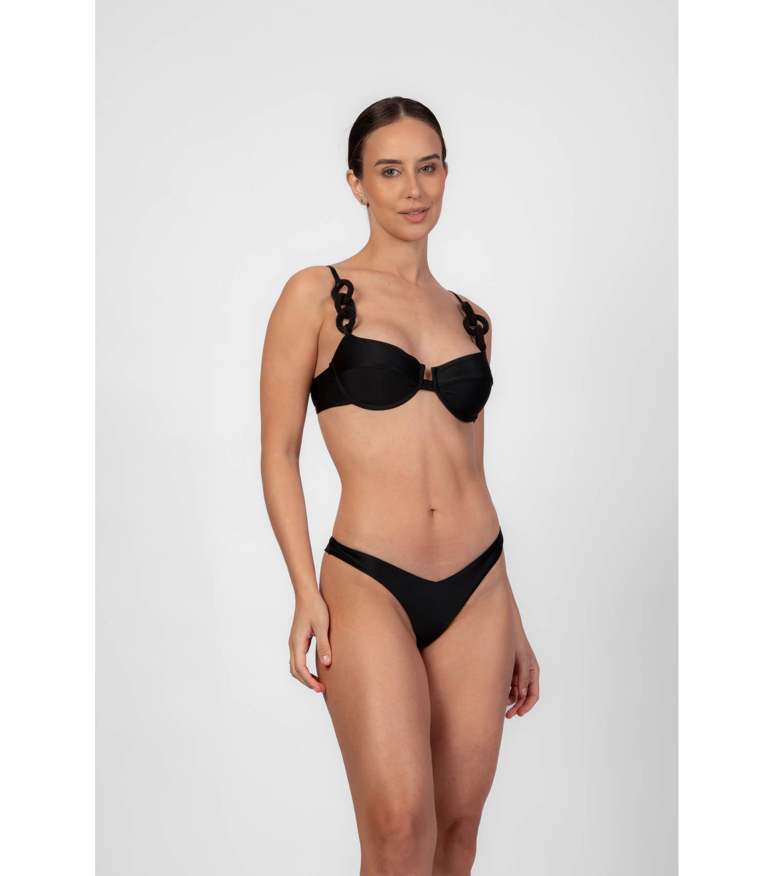 Preto top de biquíni meia taça com amarração nos ombros P