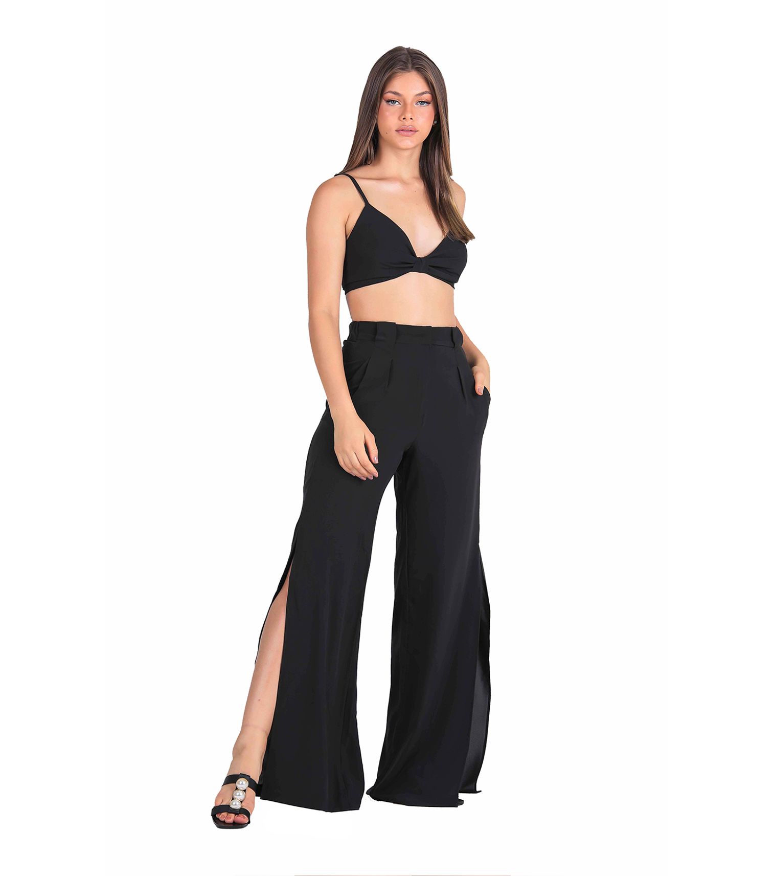 Top triângulo com alças regulaveis e amarração nas costas, cor preto
