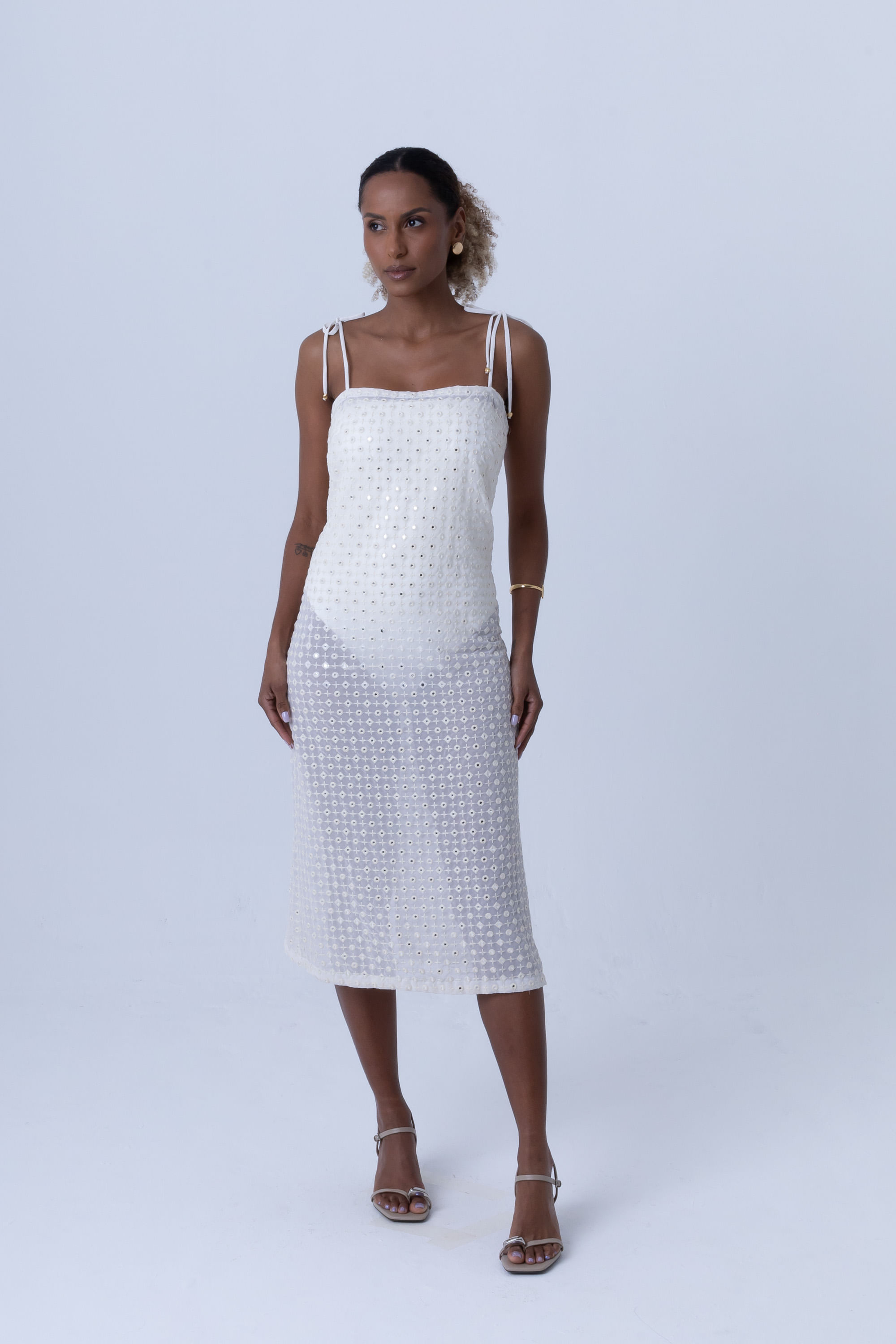 Off white vestido curto espelho com amarração no ombro P