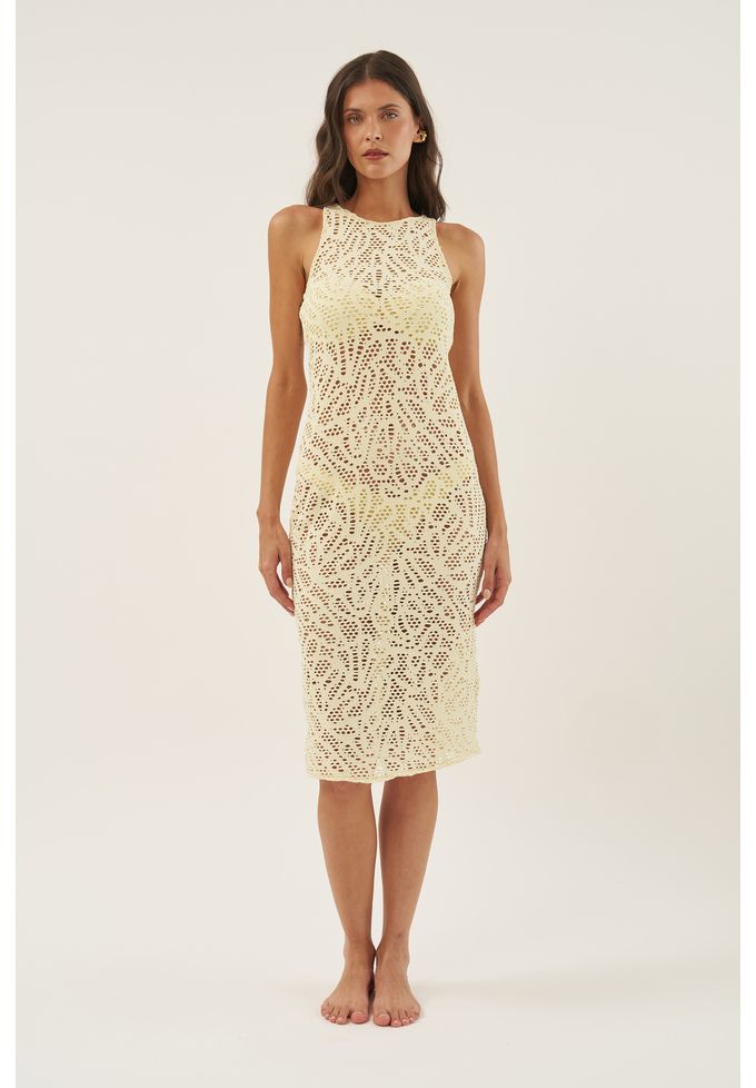 Crochet manteiga vestido midi regata