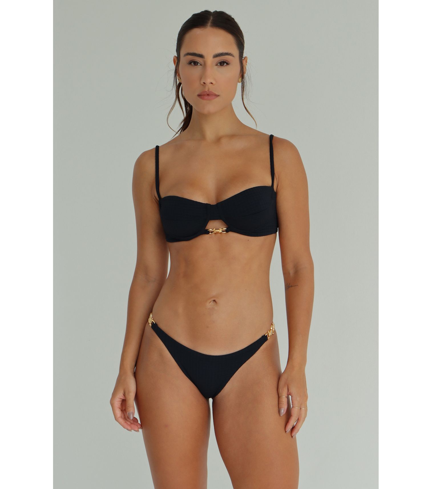 Tweed preto calcinha de biquíni com laterais em metal corda