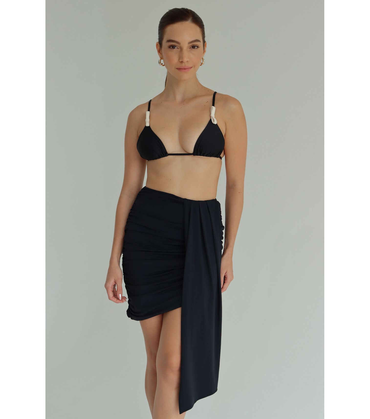 Saia franzida assimétrica cor tweed preto tecido: fluity 86% poliamida 14% elastano medidas da nossa modelo: tamanho- p busto - 86 cm cintura - 62 cm quadril - 95 cm altura - 1.70 cm