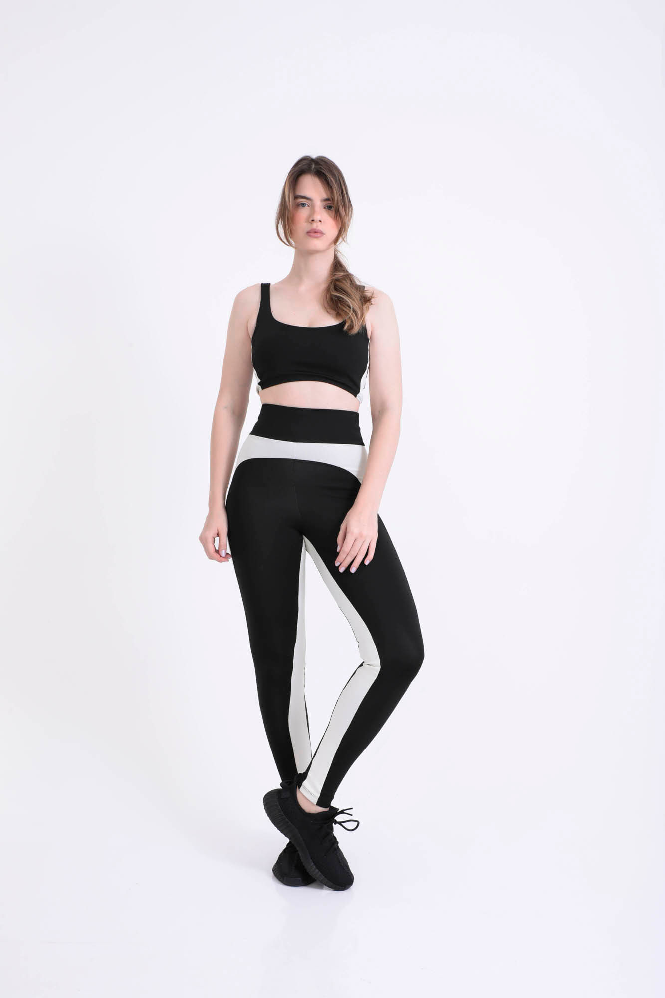 Preto legging bicolor cintura alta M