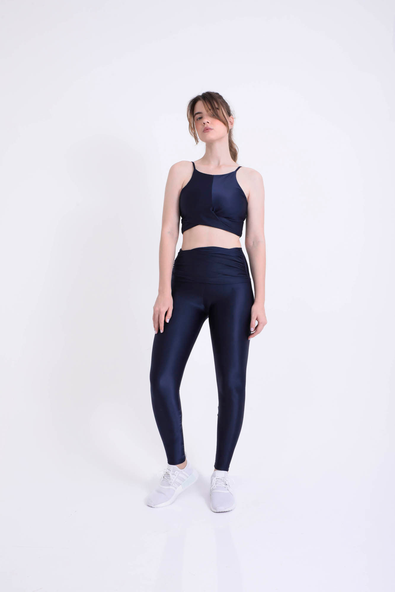 Azul legging cintura alta cós drapeado M
