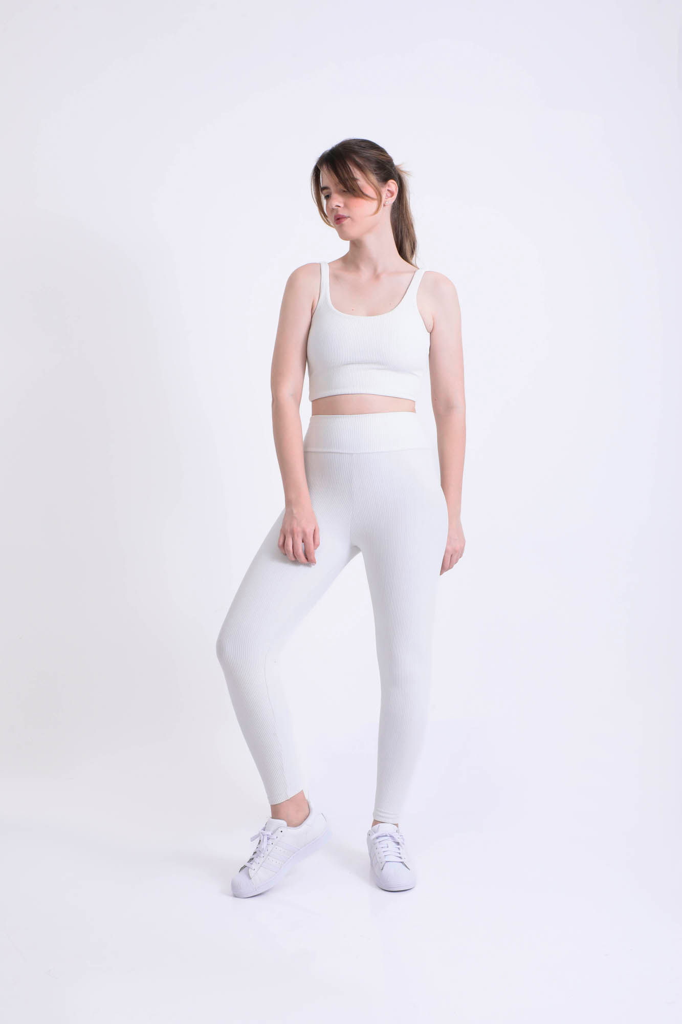 Off white canelado legging cós alto M