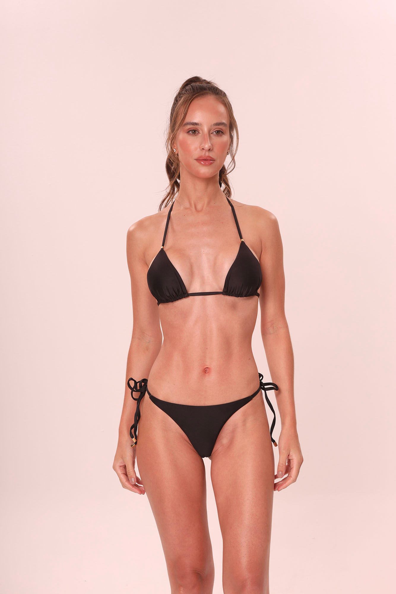 Preto calcinha de biquíni lacinho dupla P